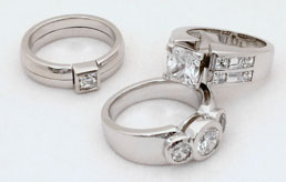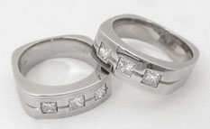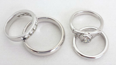 White gold rings plated with rhodium an sealed with a composite coating to prevent nickel allergies.