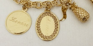 After: charm bracelet restored and re-plated with 14kt Hamilton gold